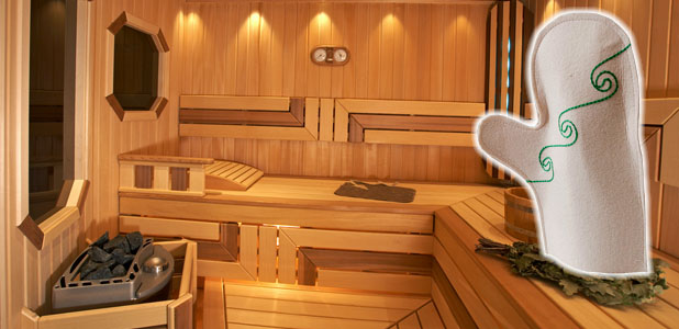 - Рукавицу для бани очень удобно использовать при парке веником, они позволяют зафиксировать его в руке, при этом полностью исключая возможность ожога горячими каплями и паром.