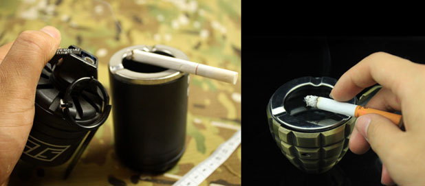 - Пепельницы-зажигалки выполнены с очень высокой детализацией, копируя внешний вид различных ручных гранат, состоящих на вооружении армий и полицейских сил нескольких стран.