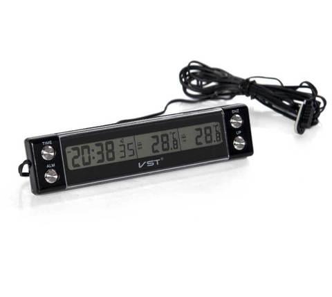Автомобильный термометр VST- 7036 станет незаменимым помощником в вашей машине. Данное устройство не только измеряет температуру внутри салона и снаружи, но также выполняет стандартные функции часов с будильником и секундомером.